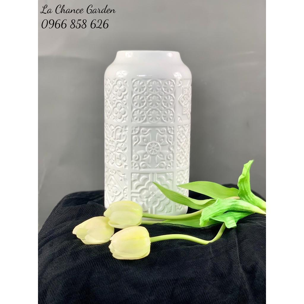 Bình cắm hoa trắng thủy tinh cao cấp